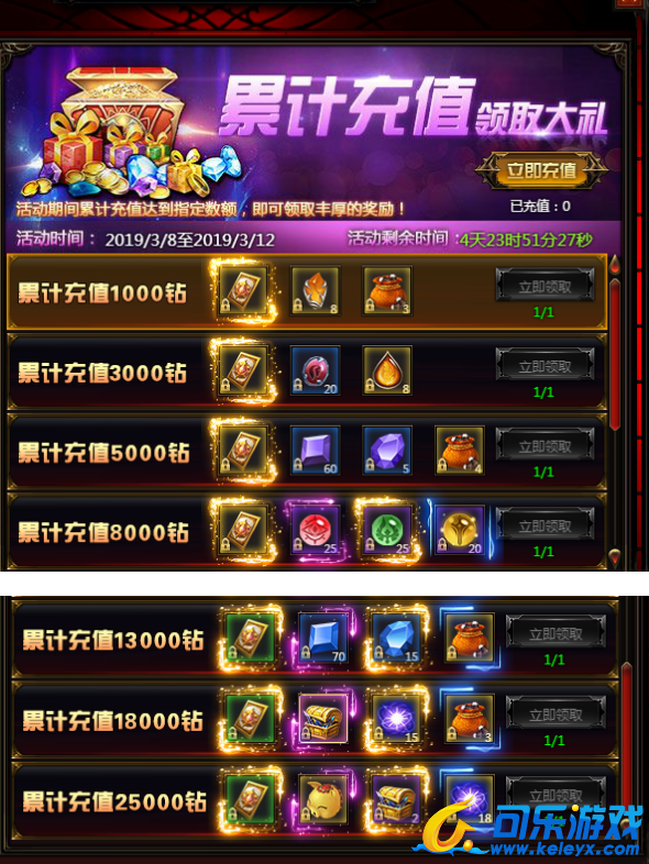活动内容:玩家在活动时间内,累计充值达到一定钻石即可获得丰厚礼品,boss卡、紫色神灵随机箱还有全新坐骑金猪祥瑞等你来拿!