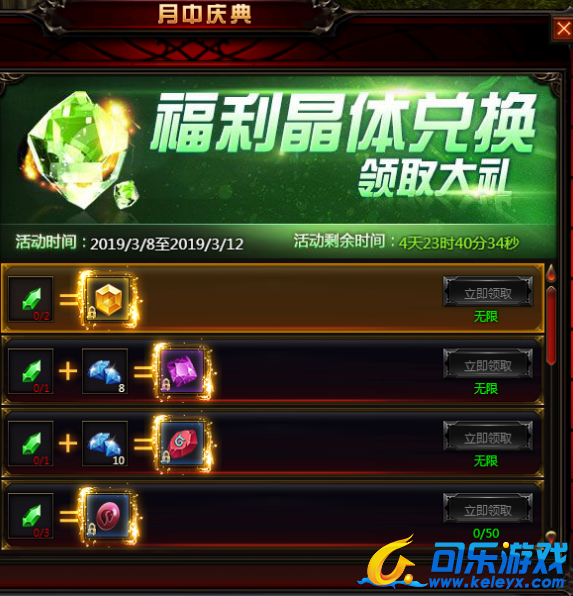 活动内容:玩家在日常挂机击杀小怪可获得小晶体,击杀野外BOSS、黄金BOSS、魔王BOSS都可获得中晶体,使用不同晶体及钻石比例可兑换游戏中稀有道具,详情请根据游戏中活动兑换页面为准。