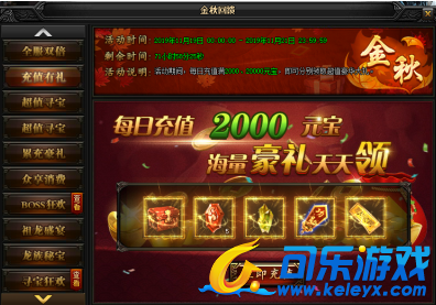 活动说明:活动期间,每日充值满2000、20000元宝!还能领取超值豪华大礼