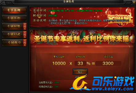 ps:圣诞狂欢活动获得的返利元宝将在活动结束后通过邮件发放