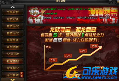 活动说明:活动期间,在龙族寻宝中,每寻宝5次,可额外获得1点祖龙之力,获取无上限!