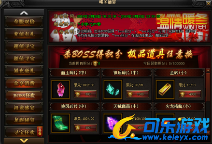 活动说明 : 活动期间内,击杀BOSS获得“boss积分”,“boss积分”可用于兑换材料,每种材料均有兑换次数限制,“boss积分”在活动结束后,清除归零