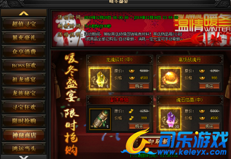 活动说明 : 活动期间,神秘商店倾情促销稀有材料!商店物品每2小时自动刷新(或全商品全部已购后),消耗一定元宝可手动刷新。