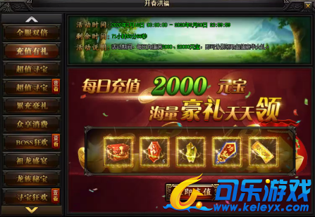 活动说明:活动期间,每日充值满2000、20000元宝!还能领取超值豪华大礼