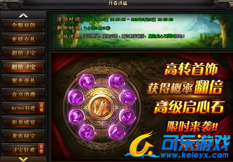 1、活动说明:活动期间,高转武器、首饰概率翻倍,超强宝石限时抽取!