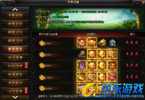 活动说明 : 活动期间内,累计充值指定元宝即可领取海量奖励