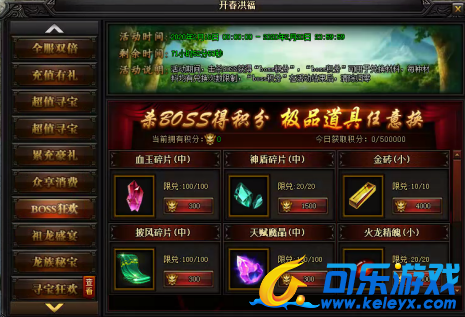 活动说明 : 活动期间内,击杀BOSS获得“boss积分”,“boss积分”可用于兑换材料,每种材料均有兑换次数限制,“boss积分”在活动结束后,清除归零