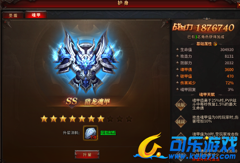 (2) 当凝聚满10星后,可进行突破升至下一阶,获得海量属性提升,增加魂甲专属伤害减少的属性值。升至指定品级的魂甲,更可激活相应的魂甲天赋,大幅提升PK能力。