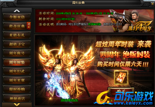 --活动期间,可在活动界面购买四周年时装“黄金年代”,使用后获得永久属性和酷炫造型