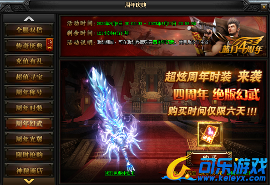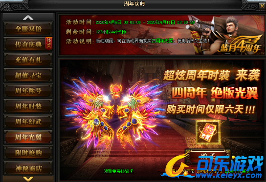 --活动期间,可在活动界面购买四周年光翼“梵焰流荧”,使用后获得永久属性和酷炫造型