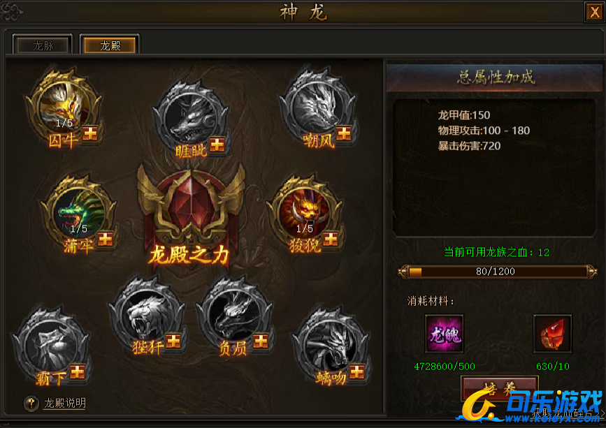 a. 系统开启:开服达到180天,角色等级达到90级,转生等级达到10级,龙脉等级42级,可从【神龙-龙脉-龙殿】处进入;