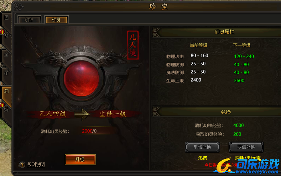 2) 幻灵升级需要消耗幻灵经验,升级后获得幻灵属性提升;