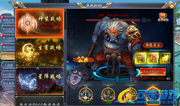 新增战场BOSS!全新的星阵战场、坐骑战场、神兵战场、光翼战场震撼来袭,所有战场都有一个强力的战场BOSS坐镇,超高掉率,快来争夺吧!