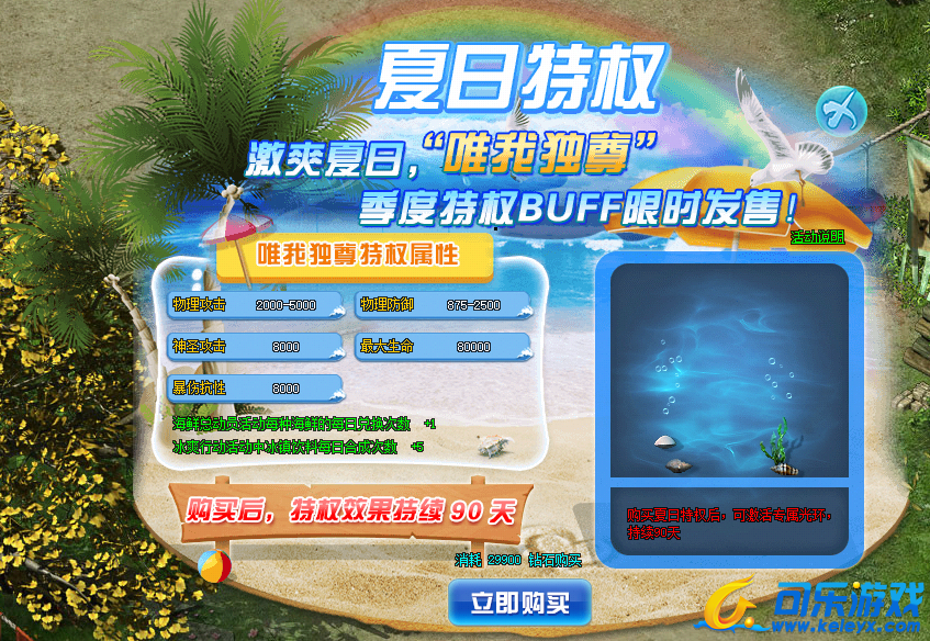 (2)玩家可消耗钻石购买唯我至尊buff,购买buff后获得特殊的夏日主题外观