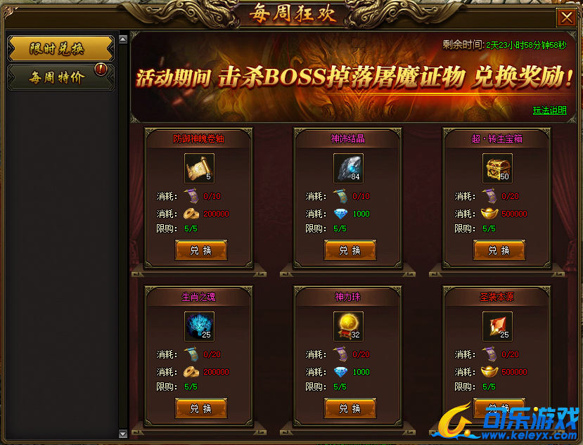 (3)使用屠魔证物+元宝/创世币/钻石可兑换奖励