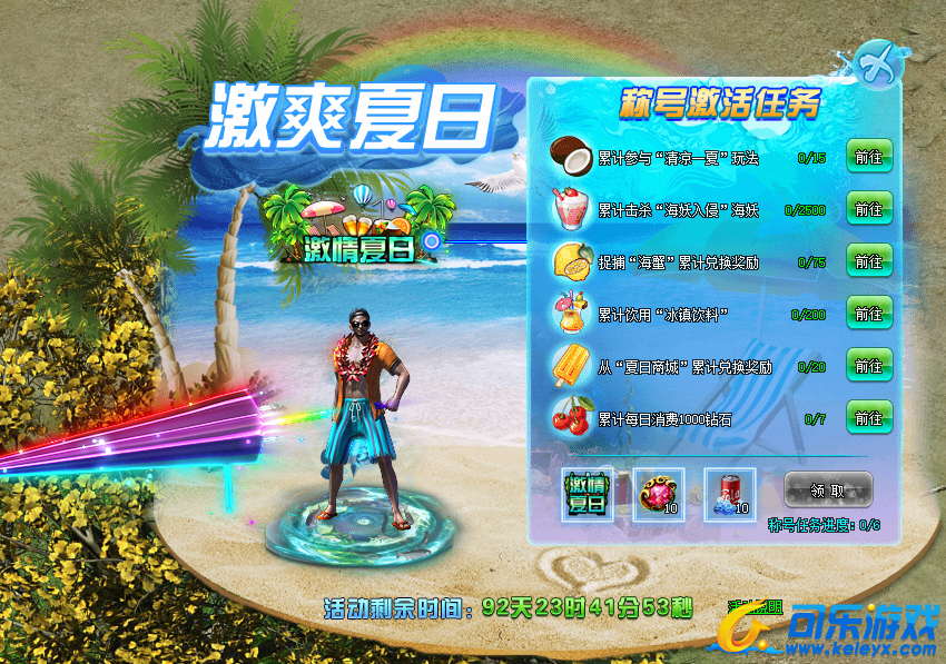(2)活动期间,完成激爽夏日任务可获得夏日主题的称号、幻甲、幻武、足迹