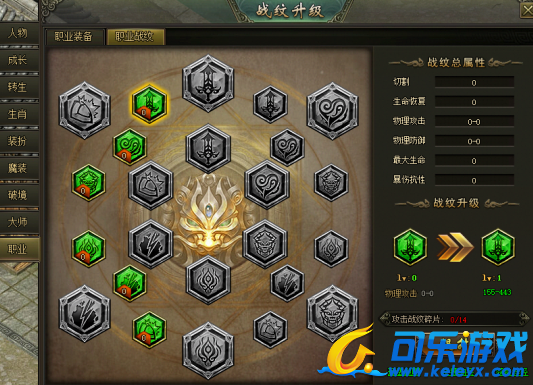(1)开启条件:玩家转职成为怒战士,可通过点击“人物-职业-职业战纹”页签打开界面