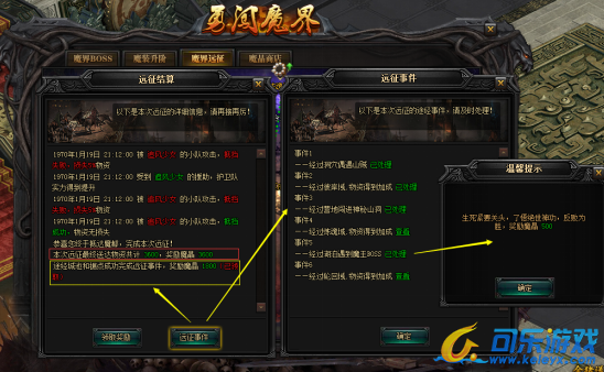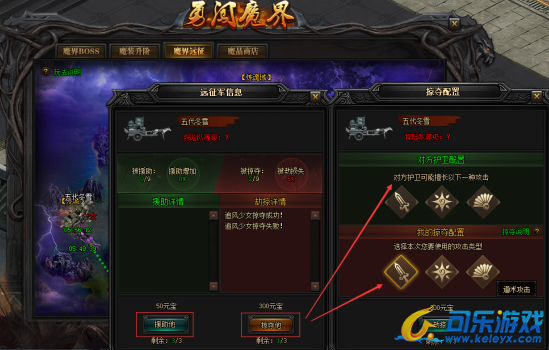 转生等级达到1转的玩家,可在“勇闯魔界”界面开启“魔界远征”玩法,每天1次