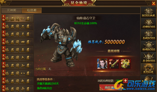 界面入口:BOSS挑战-昆仑秘境-仙品阁
