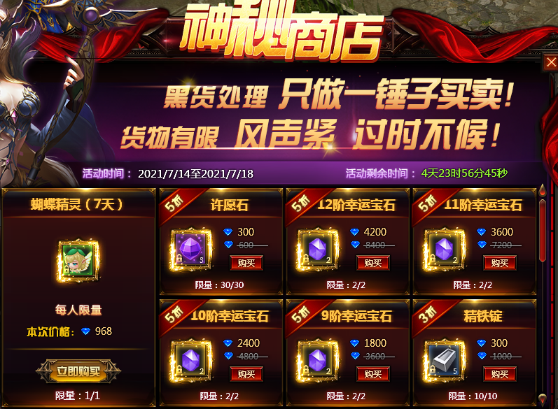 3.玩家也可以在神秘商店中购买许愿石许愿,许愿石许愿必得稀有品质以上宝箱。