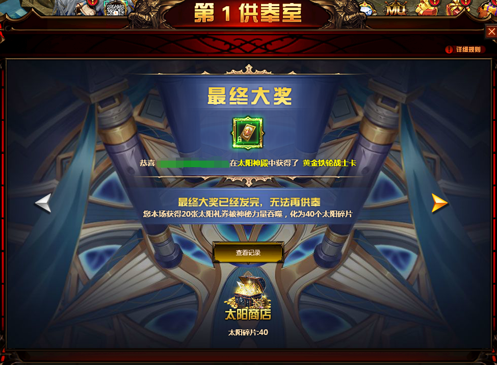 3.每日晚10点会结束供奉,并根据太阳礼券获取情况抽取最终奖励