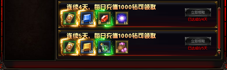 活动内容:活动时间内,玩家每日充值达到1000钻,即可获得丰厚奖励!