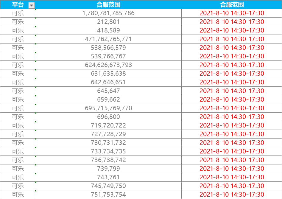 合服时间:8月10日14点30分至17点30分