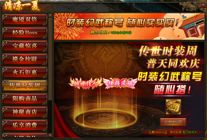 1.活动期间,玩家可在神秘商店中购买商品,商品可用金币,绑元,元宝进行购买;