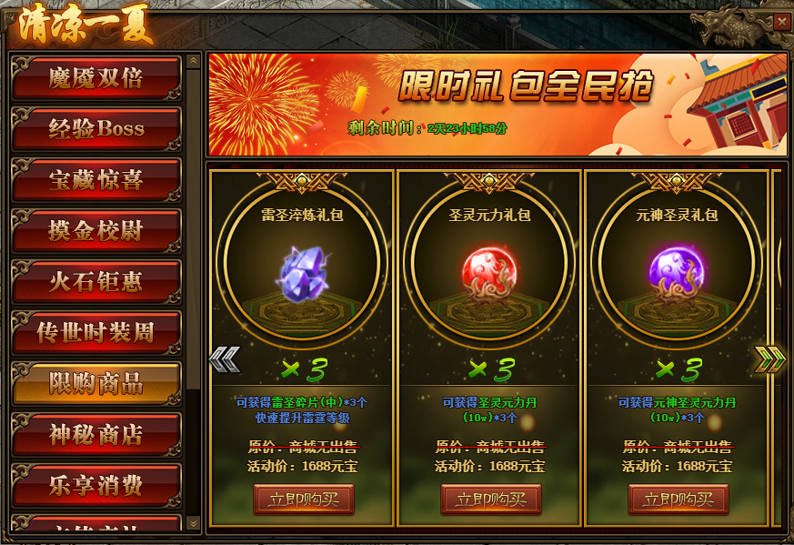 3.不同礼包,买买买,请查看游戏内更多新礼包内容!