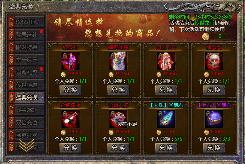 1.活动期间,购买传世特惠礼包可以获得传世龙币