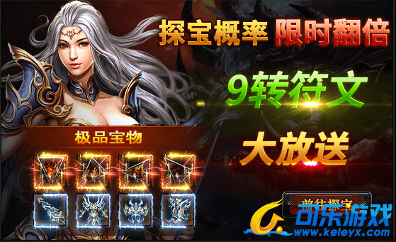 活动期间内,探宝概率翻倍;并有较大概率获得9转符文、高转装备、霸王神装、等极品道具!