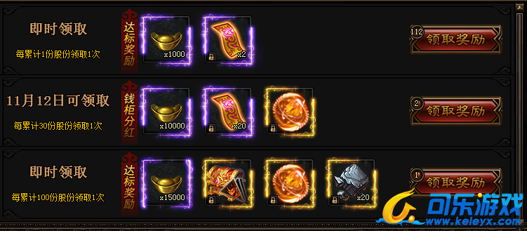 活动期间,每充值8888元宝即可获取1份股份,最高持有200股份。达到指定要求股份数量和时间要求即可领取奖励!