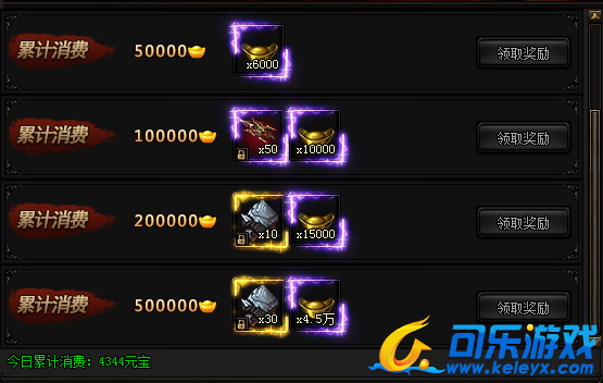 活动期间,每日累计消费指定金额元宝即可获得奖励!