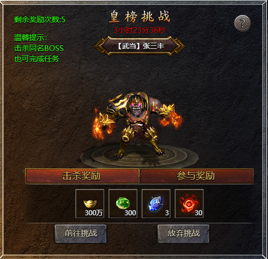 使用后玩家会收到一个系统发来的任务,击杀世界boss。可以放弃任务不消耗每日奖励次数,当玩家完成任务之后可领取大量奖励,每日完成任务此物为5,这里注意,要开服第二天才可以使用。