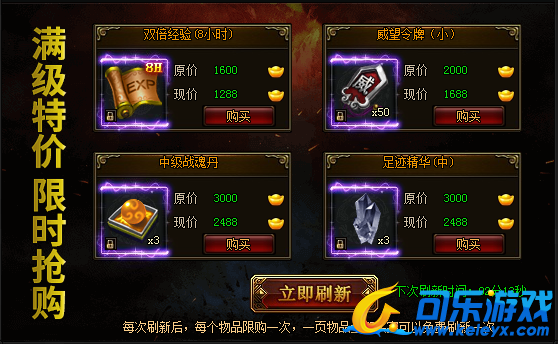 活动期间,可购买超优折扣每日限购礼包,英雄转职卡、印记灵魄、探宝符、羽毛、魂玉结晶、护盾结晶、暗器结晶、成就令牌、声望令牌等极品道具仅限活动期间跳楼优惠!