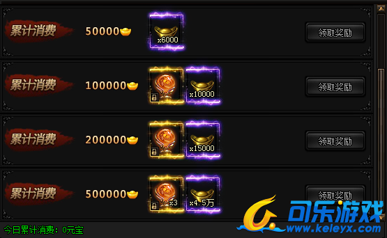 活动期间,每日累计消费指定金额元宝即可获得奖励!