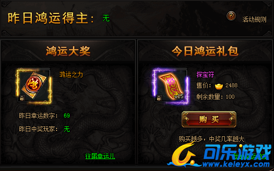 活动期间,购买限购礼包赢取幸运大奖,奖励极品限时称号。(全服限量买到即赚到)购买礼包越多,中奖几率越大!