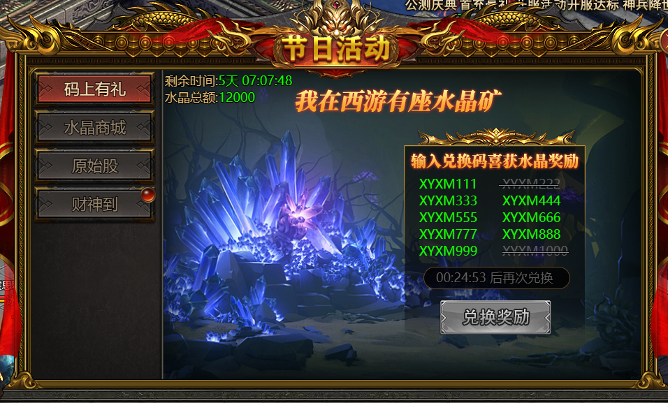 ² 水晶为本次活动的资源货币,输入兑换码后获得,可用于水晶商城页签购买物品;