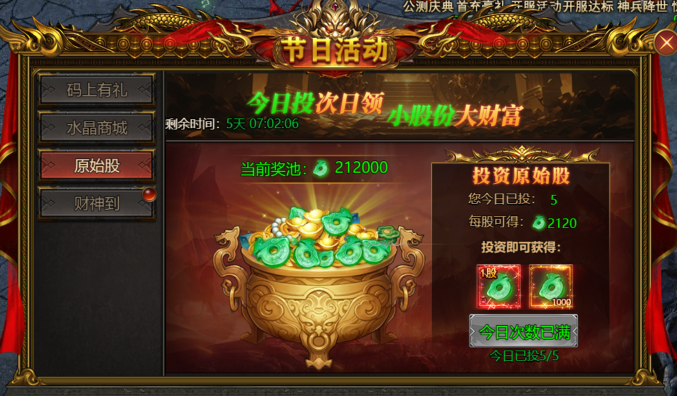 ² 本服玩家可进行投资,每位玩家投资后,奖池也会增加仙玉数量;