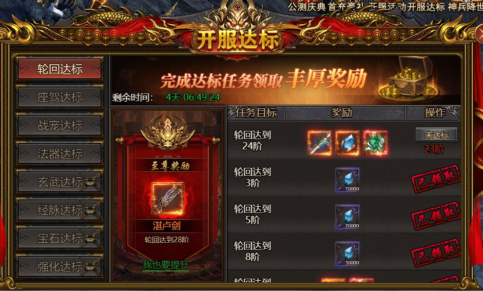 ² 除转生和战宠达标外,所有达标活动都有快捷跳转到珍宝阁
