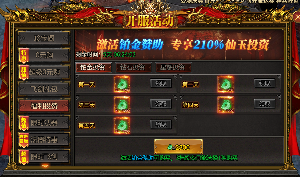² 每日的首次投资消耗仙玉,后面几次需要直购投资;