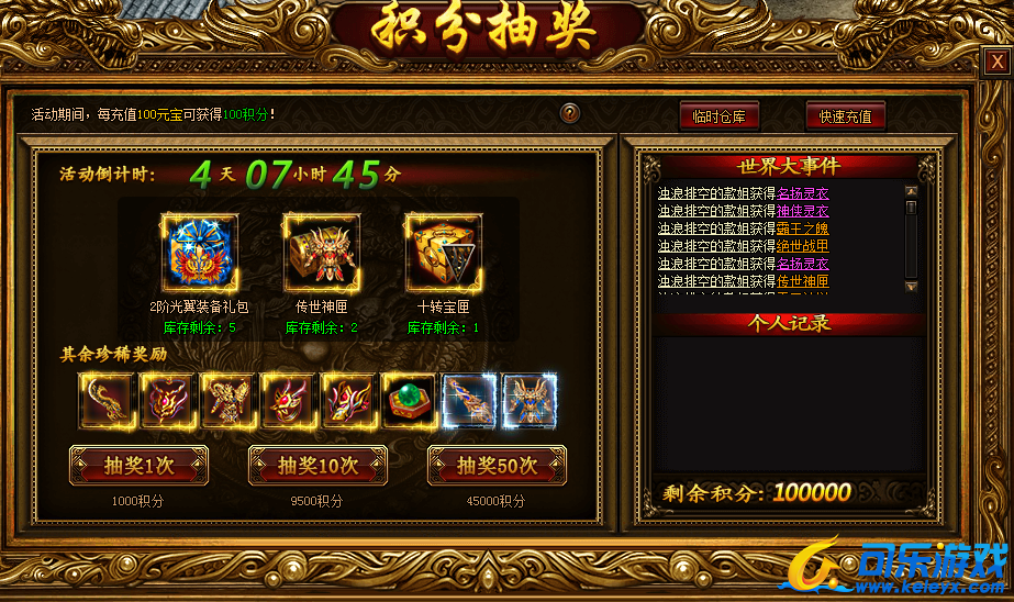 活动期间,每充值100元宝可获得100积分!(温馨提示:积分在活动结束后清空,请务必使用完毕!)