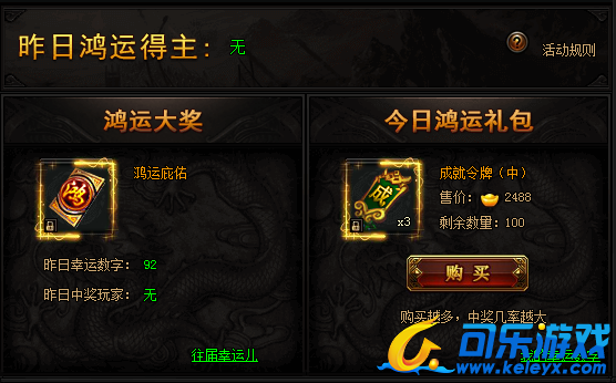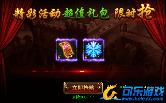 活动期间,购买限购礼包赢取幸运大奖,奖励极品限时称号。(全服限量买到即赚到)购买礼包越多,中奖几率越大!