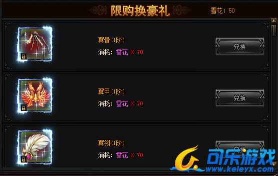 活动期间内,进行幸运探宝有一定概率获得雪花。可以使用雪花兑换下列极品奖励!