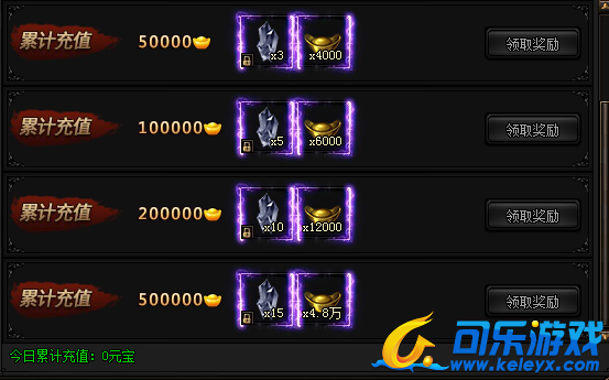 活动期间,每日累计充值指定金额即可领取奖励。