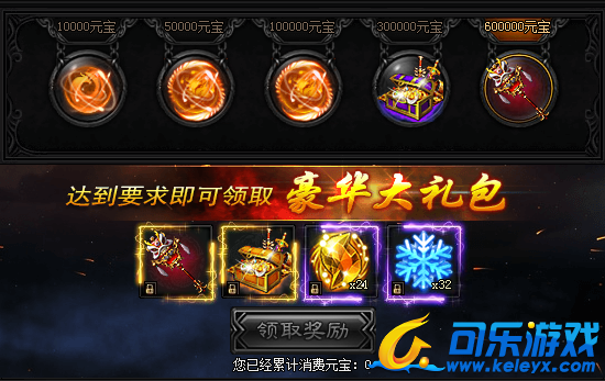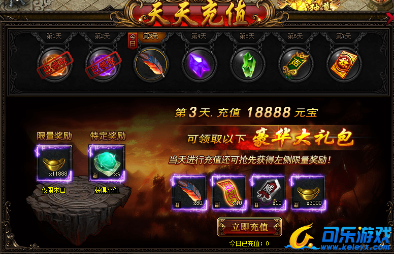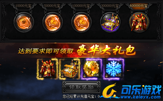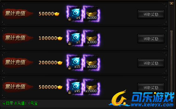 活动期间,每日累计充值指定数额元宝即可领取奖励!