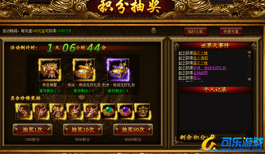 活动期间内,每充值100元宝可获得1积分!(温馨提示:活动结束前记得花完积分哦)