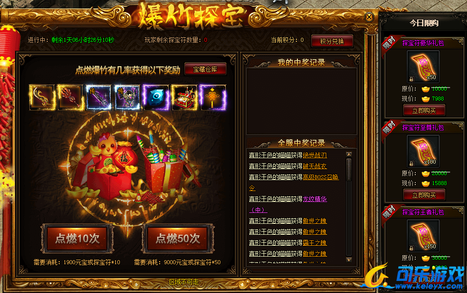 活动期间内,可以在右侧购买超值优惠的探宝符,让您一次探个爽!