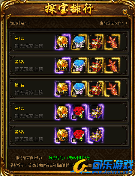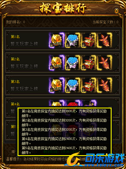 活动期间内,达到右侧探宝次数,活动结束会发放排行奖励。