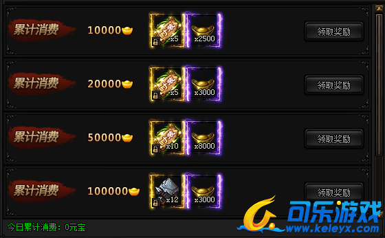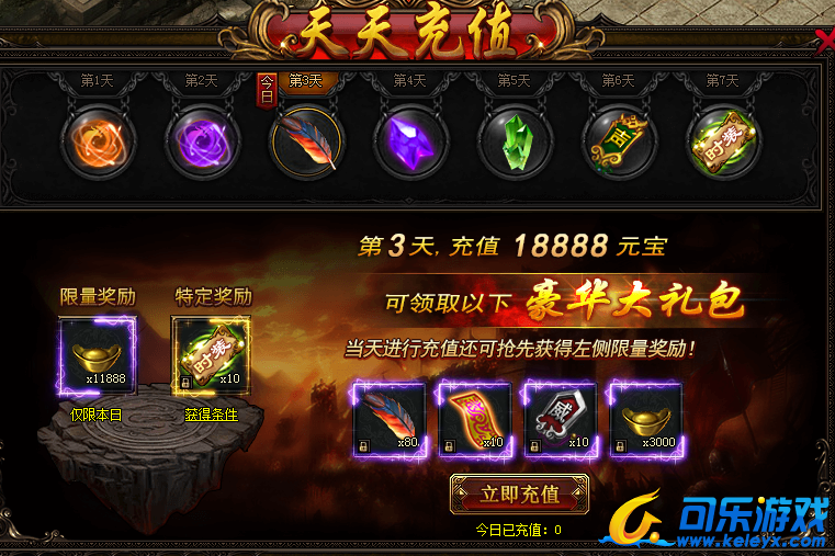 活动期间,每日累计充值指定数额元宝即可领取奖励!